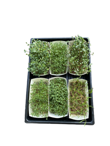 Naš zabojček zmešane mikrozelenjave vsebuje različno mikrozelenjavo sajeno naenkrat v enem zabojčku. Sami izberite vrste mikrozelenjave v enem zabojčku ali pa pustite, da vas presenetimo.
